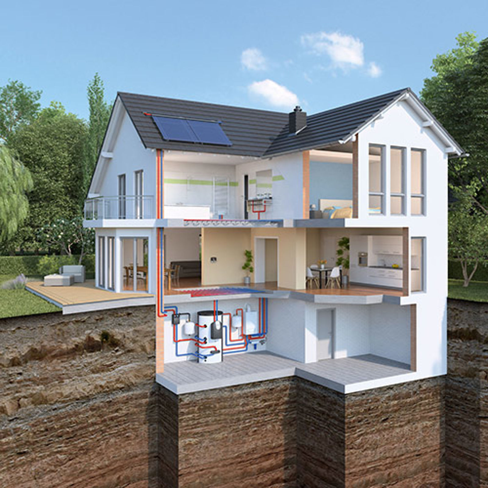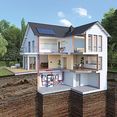In der Kombination mit einer Sole-Wasser-Wärmepumpen nutzen Sie die Sonnenenergie gleich doppelt. Zum einen lässt sich die Solarwärme direkt in den Heizkreiskreislauf der Wärmepumpe einspeisen. Zum andern wird überschüssige Solarwärme zurück ins Erdreich geführt, damit dieses nicht zu sehr auskühlt, was die Wärmepumpe noch effizienter arbeiten lässt.